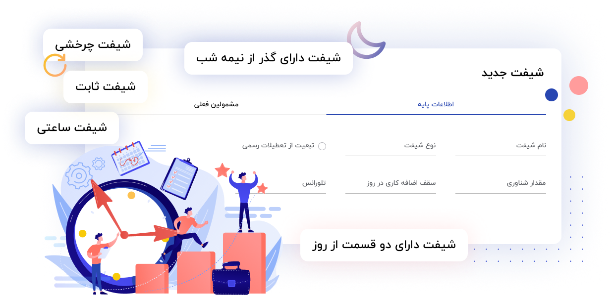 پێناسەکردن و ڕێکخستنی هەموو جۆرە شەفتێکی کارکردن بەپێی پێویستی کۆمپانیا و دامەزراوەکەتان .